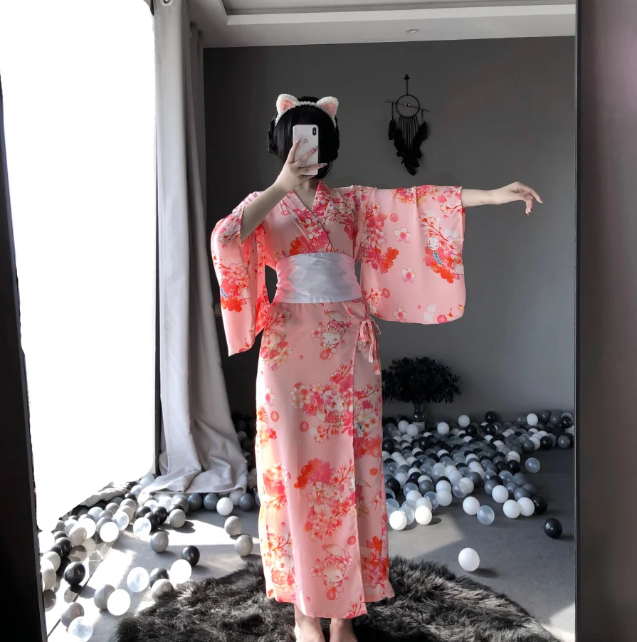 Women S Japanese Sexy Print Cat Bow Kimono Bathrobe Uniform Temptation Nightgown Suit Halloween Outfits For Women Sexy Costume Sexy Costumes Aliexpress